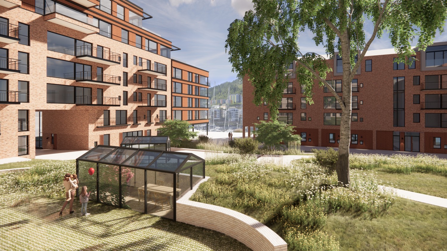 Vi ønsker å skape et boligområde som svarer på tomtens helt spesielle kvaliteter, samtidig som en variert bebyggelse med intim skala ivaretas.